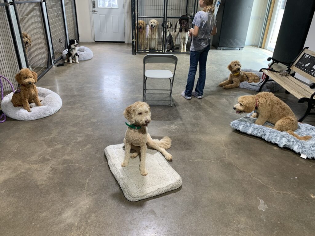 We also take your dog out in public for on leash training with distraction. At home we train mostly off leash. Each dogs works several hours each day with a trainer and still has lots of play time with other dogs. Many dogs need 3-4 weeks to develop their new skills.